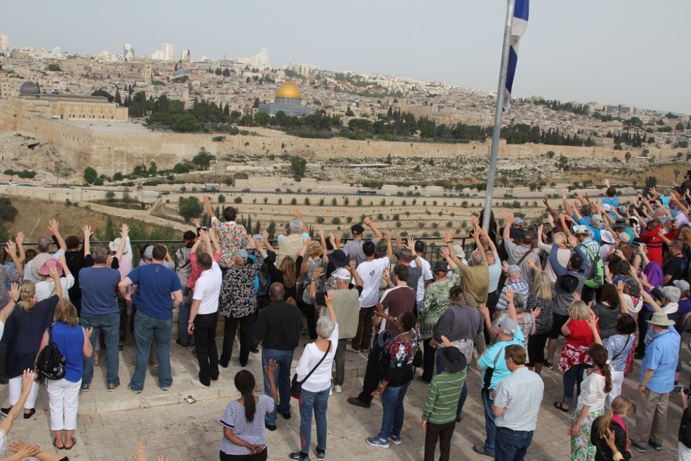 STANDING ON THE MOUNT OF OLIVES OVERLOOKING JERUSALEM