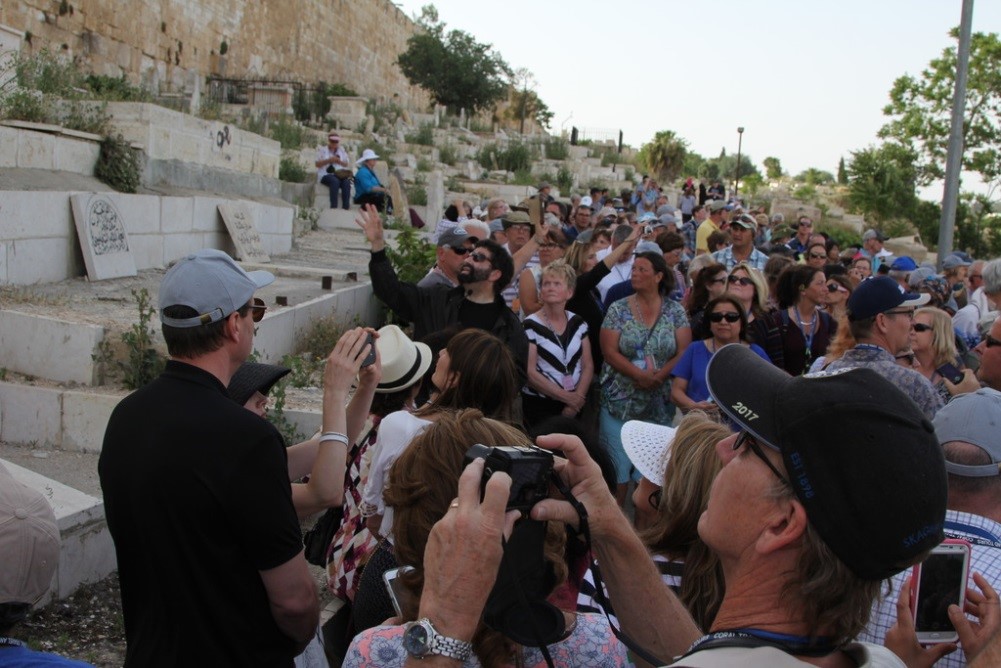 STANDING ON THE MOUNT OF OLIVES OVERLOOKING JERUSALEM